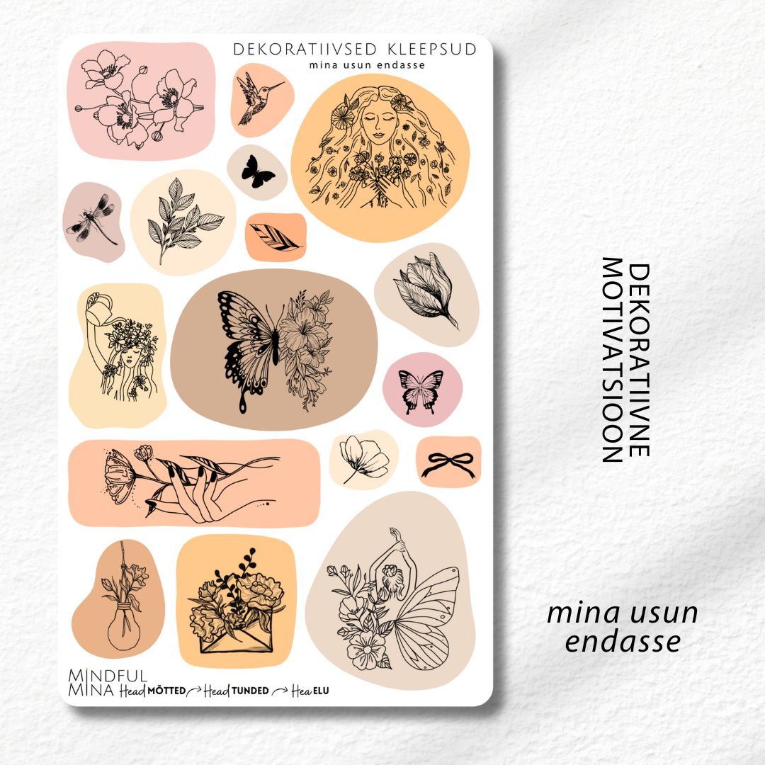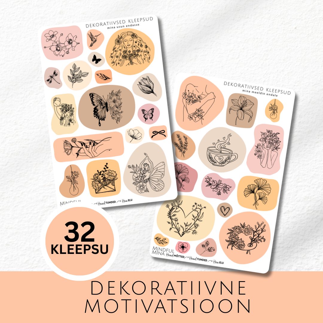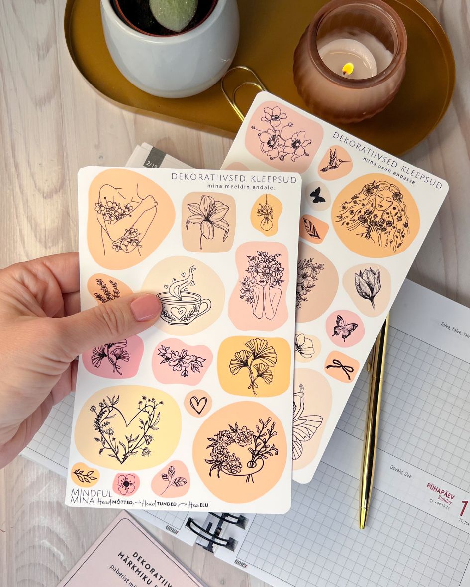 See dekoratiivsete illustratsioonidega kleepsukomplekt on loodud neile, kes armastavad loovat planeerimist ja soovivad oma päevadesse tuua veidi rohkem soojust, õrnust ja positiivset meeleolu.