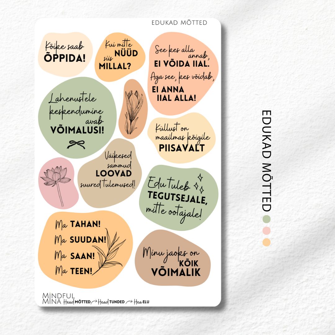 Kui soovid toetavat mõtteviisi, rohkem tegutsemisjulgust ja selgust oma teel, siis need kleepsud on suurepärane igapäevane tööriist.
